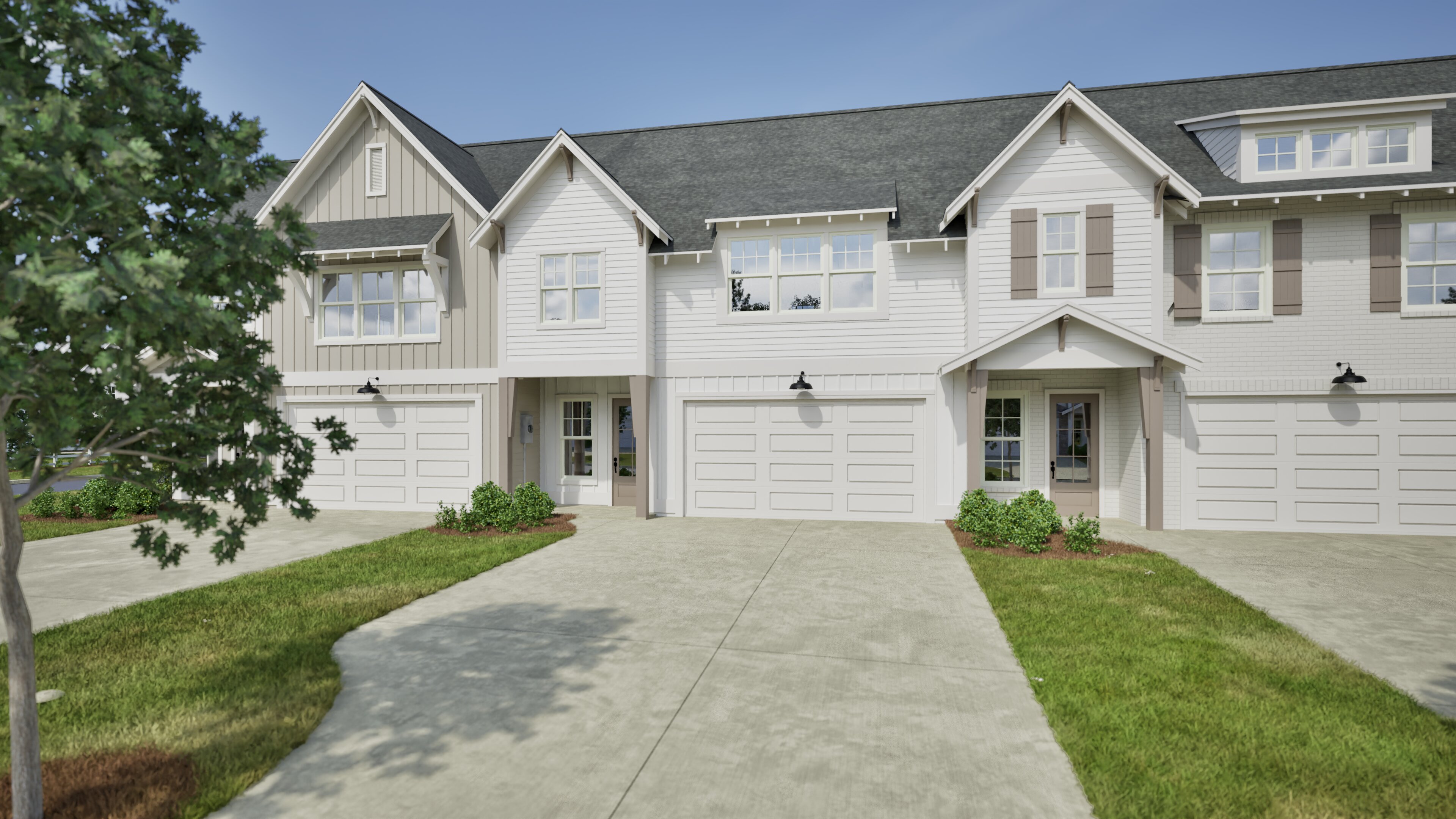 The Ivy is a thoughtfully designed two-story, three bedroom, interior unit townhome offering a functional layout with the primary suite conveniently located on the main level. The first floor features an open-concept living space where the great room flows seamlessly into the dining area and kitchen, complete with a large center island and easy access to the covered porch—ideal for everyday living and entertaining. The private primary suite includes a spacious walk-in closet and ensuite bath with an optional double-vanity upgrade. Additional main-level highlights include a powder room, dedicated laundry area, foyer entry, and direct access to the two-car garage. Upstairs, two additional bedrooms share a full bathroom with an optional double-vanity layout. The second floor provides flexible space for family, guests, or a home office while maintaining privacy from the main-level primary suite.